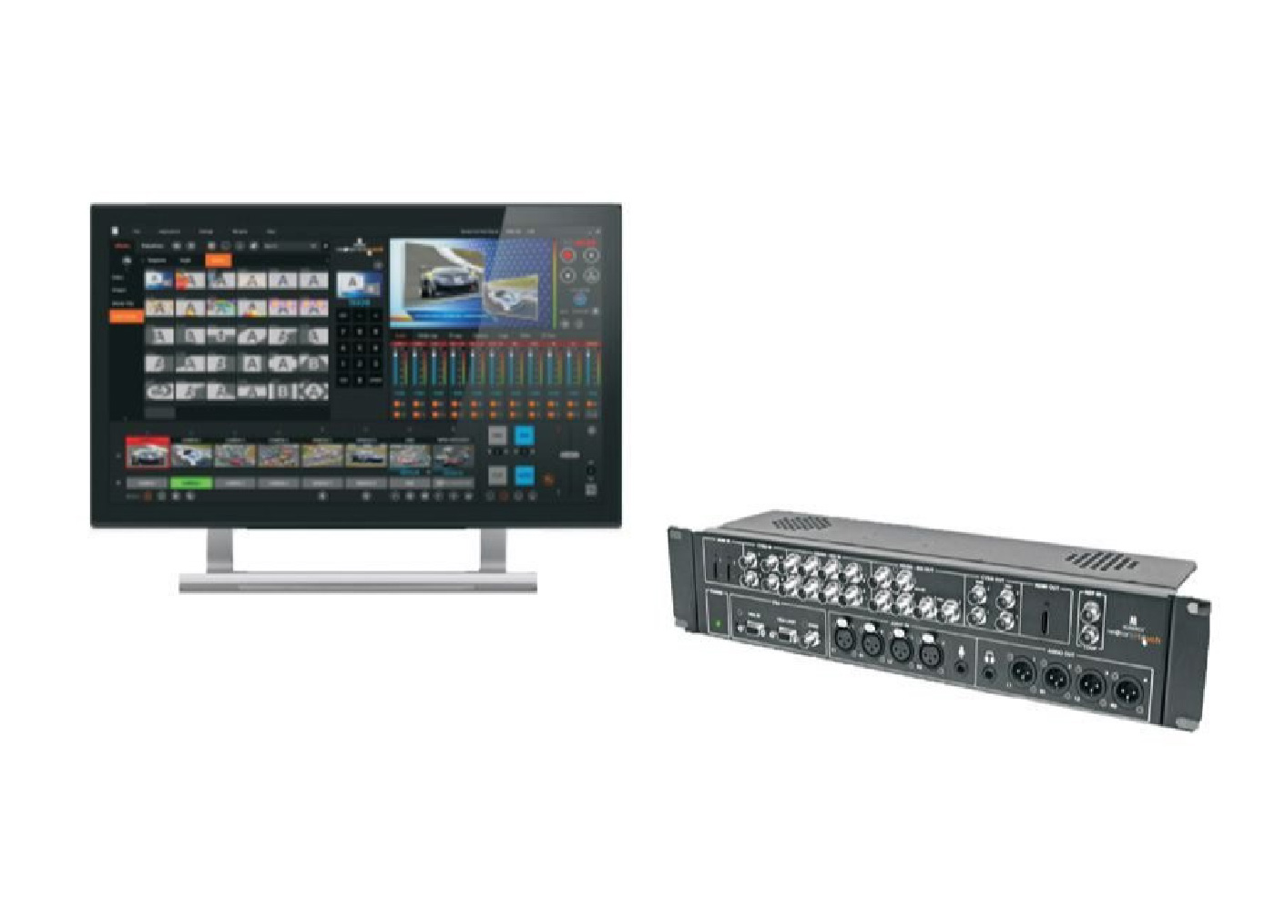 This highly versatile unit integrates an HD/SD video switcher/ Mixer, audio mixer, MultiViewer, and control panel in a single, compact unit. The HMX100 features a built-in MultiViewer output and combines high-quality video switching with embedded or analog audio mixing functions. It offers a very flexible user interface and supports SD, HD formats, plus switching of 3D sources. It’s ideal for use in schools, public access channels, live events and weddings, and in mobile or portable applications.